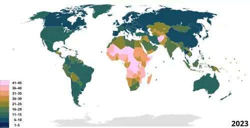 Мир находится в общемировом демографическом тренде глобального старения населения Земли (кроме Африки южнее Сахары) и вызванного им уже в ряде стран, как развитых так и развивающихся, демографического кризиса. Сокращение рождаемости — это общая тенденция глобального демографического перехода населения Земли.[16][17][18][19][20][21][22][23]
