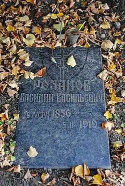 В. В. Розанов скончался 5 февраля 1919 года и был похоронен с северной стороны храма Гефсиманского Черниговского скита в Сергиевом Посаде.