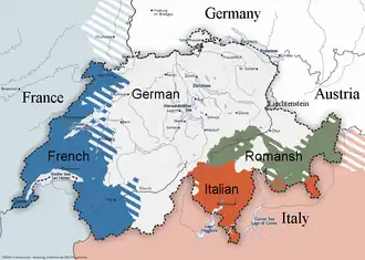 В V веке римские легионы оставляют Рецию, после чего туда проникают бавары и аллеманы[8]. В Средние века ареал романшского языка был значительно больше современного — по-видимому, он доходил даже до Боденского озера.