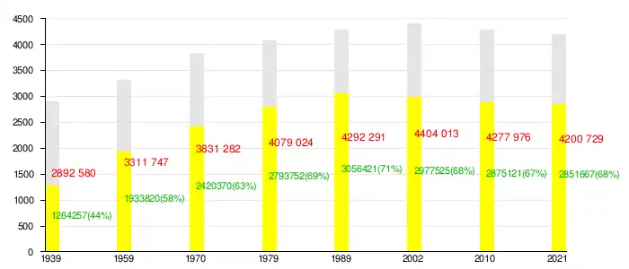| 2 979 200 | ↘2 177 600 | ↗3 311 747 | ↗3 831 262 | ↗4 080 647 | ↗4 290 000 | ↗4 308 654 | ↘4 307 956 | ↗4 344 528 | ↗4 370 389 | ↗4 404 578 | ↗4 438 295 |