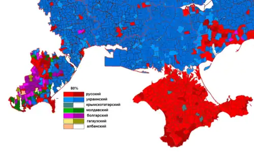 • между 1959 и 1979 годами численность украинцев, которые считали украинский язык родным, упала с 93,4 до 89,1 %, в то время как доля указавших украинский язык родным в УССР в целом между 1959 и 1989 гг. сократилась с 73,0 %[49] до 64,7 %[50]. Особенно заметным было сокращение доли считающих украинский язык родным в южных и восточных областях: в Луганской области — на 15,6 % (с 50,5 % до 34,9 %), в Донецкой области — на 13,8 % (с 44,4 % до 30,6 %), в Запорожской области — на 11,7 % (с 61,0 % до 49,3 %), в Харьковской области — на 10,7 % (с 61,2 % до 50,5 %), в Днепропетровской области — на 10,6 % (с 72,1 % до 61,5 %), в Николаевской области — на 9,2 % (с 73,4 % до 64,2 %), в Херсонской области — на 8,0 % (с 75,7 % до 67,7 %);