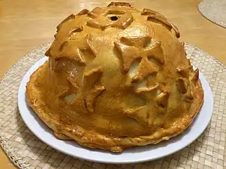 Русская кухня отличается разнообразием пирогов, под которыми в русской гастрономической культуре понимают любое печёное изделие из раскатанного теста с начинкой. Пирог — праздничное выпечное изделие, его приготавливают для пира. Для русских народных говоров характерны названия пирогов по их начинке: капустники, рыбники, картофники, луковники, морковники, грибники и ягодники[92].