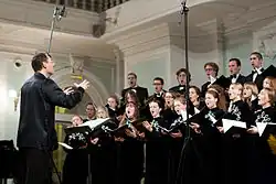 История светской хоровой музыки в России начинается в XIX веке[41], когда в православную церковную музыку приходит партесное пение, заменившее одноголосное знаменное пение. Тогда же появляется светское камерное хоровое пение, исполняемое в кантах.