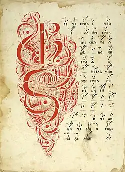 Зна́менное пение или зна́менный распев — основной вид древнерусского богослужебного пения. Название происходит от невменных знаков — знамён, использовавшихся для его записи. Древнейшие нотированные крюками рукописи относят к XI веку. К XVII веку в крюковой записи появились дополнительные знаки — «призна́ки» и «пометы», ранние рукописи представляют беспометную нотацию. Рукописи XVII века фиксируют появление, наравне с традиционным одноголосным пением, раннего народного многоголосия (строчное пение), которое также было записано знамёнами. В ходе реформ XVII века знаменное пение постепенно вытеснялось формами европейского пения, основанном не на старинных модальных ладах, а на мажорно-минорной тональности западноевропейского образца. В конце XVII — начале XVIII веков знаменные мелодии в киевской традиции стали записывать в квадратной нотации, напоминающей римскую квадратную нотацию, принятую в певческих книгах католиков. В 1778 году в Москве был издан «Сокращённый Обиход нотного пения», получивший всеобщее распространение и принятый в качестве первоначального руководства при обучении церковному пению в духовных учебных заведениях[19].