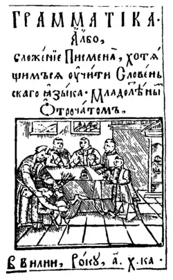 В 1619 году выходит в свет знаменитая «Грамматики Славенския правилное Синтагма» Мелетия Смотрицкого напечатанная в Евье (город близ Вильно). В ней излагались вопросы орфографии, морфологии, синтаксиса, стилистики и стихосложения и устанавливались нормы старославянского языка. Она переиздаётся в 1648 и в 1721 годах. М. В. Ломоносов назвал «Грамматику» Смотрицкого «вратами учености». На протяжении XVII—XVIII веков «Грамматика» неоднократно переиздавалась. Она сохраняла свое научное и практическое значение вплоть до выхода в свет «Грамматики» М. В. Ломоносова в 1755 году.