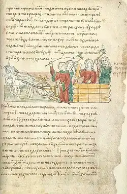 Поставление Андреем Боголюбским иконы Богоматери во Владимирской Богородцкой церкви в 1158—1160 годах. Миниатюра Радзивилловской летописи, конец XV века