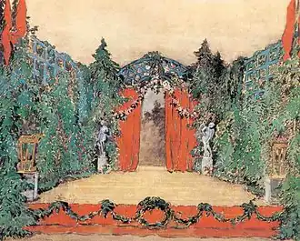 - Декорации и костюмы Бенуа к балетам «Жизель» , «Петрушка» , «Соловей» , «Павильон Армиды»