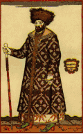 - а также изображение подьячего Афанасия Монастырева из того же посольства. Отпечатан на обратной стороне портрета Ивана Грозного, по сообщению Ровинского, находившегося в собрании М. Н. Похвистнего (повторение фигуры с 1-го листа). В 1579 года эта фигура была отпечатана под именем дьяка Клобукова — плененного шведами при осаде Вендена[7].