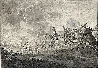 12 июня Долгоруков подошёл к Перекопу. Перекопский вал, который прикрывал Перекопский перешеек, имел длину до 7 км, был хорошо укреплён у Чёрного моря и был сильно разрушен в той части, которая примыкала к Сивашу. Обороняли его 50 тыс. татар и 7 тыс. турок под личным командованием крымского хана[63]. В ночь с 13 на 14 июня небольшой отряд пехоты под командой генерал-квартирмейстера М. В. Каховского начал обстрел вала у Сиваша, привлекая на себя внимание. Через 1,5 часа перестрелки штурмовая колонна (9 батальонов гренадер и 2 батальона егерей) во главе с генерал-майором В. П. Мусиным-Пушкиным стремительной атакой захватила вал со стороны Чёрного моря. В это время кавалерия 2-й армии под командованием генерал-майора А. А. Прозоровского обошла вал по флангу через Сиваш, зашла в тыл татарам и, отразив их контратаку, преследовала бегущих на протяжении 20 км. Гарнизон крепости Перекоп (871 человек) сдался 15 (26) июня 1771 после обстрела. Потери турок и татар составили более 1200 человек, потери русских — 25 убитых, 6 пропавших, 135 раненых. На валу и в крепости захвачено 178 пушек[64]. Главные силы крымского хана бежали в Кафу (Феодосия), а сам хан Селим-Герай бежал в Константинополь.