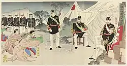 Китайские генералы в Пхеньяне сдаются японцам, октябрь 1894 года (японская гравюра).