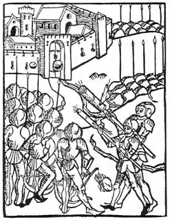 - ↑ Контамин Филипп. Война в средние века. Архивная копия от 18 июля 2019 на Wayback Machine — СПб.: Ювента, 2001. — С. 167.
