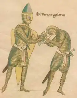 - ↑ Окшотт Э. Рыцарь и его доспехи. Латное облачение и вооружение. Архивная копия от 16 сентября 2017 на Wayback Machine — М.: ЗАО «Центрполиграф», 2007. — С. 13, 25.