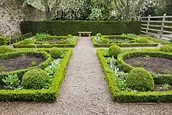Данный тип садовой посадки обычно состоит из разнообразных ароматических и кулинарных трав или низких живых изгородей, например таких как самшит, высаженных рядами для создания специально переплетающегося, геометрического рисунка, помещенного в квадратную рамку и уложенного на ровный субстрат из почвы. Пространство между геометрически расположенными линиями часто заполняется камнем, гравием, песком или цветущими растениями. Традиционно в такого типа садах используют дубровник, майоран, тимьян, полынь, мелиссу, иссоп, костянку, акант, мальву, ромашку, розмарин, календулу, фиалку и сантолину.