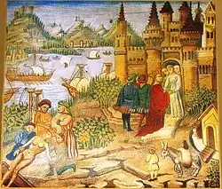 Гравюра, изображающая врачей и пациентов Салернской врачебной школы XI—XII век.