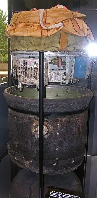 В переходном отсеке была шлюзовая камера для проведения научных экспериментов, а также манипулятор для установки в шлюзовую камеру капсулы спуска информации (КСИ, изделие 11Ф76). В капсулу (автономный спускаемый аппарат) загружалась фотоплёнка и другие материалы, требующие срочной доставки на Землю. Капсула выталкивалась из шлюзовой камеры станции в открытый космос, ракетные двигатели, работающие на сжатом азоте, её ориентировали нужным образом, для торможения включался твердотопливный ракетный двигатель. Капсула переходила на баллистическую траекторию спуска через плотные слои атмосферы, затем приземлялась на парашюте. Если бы капсула приземлилась за пределами территории СССР — было бы активировано подрывное устройство, полностью уничтожающее доставленные на Землю секретные материалы.