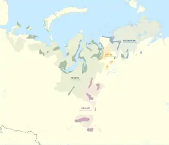 - нганасанский (язык нганасанов (тавги)) — 125 говорящих[2]