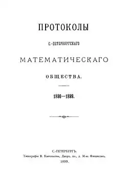 - 1 2 Протоколы Санкт-Петербургского математического общества. СПб., 1899, 131 с. Дата обращения: 31 июля 2016. Архивировано 7 августа 2016 года.