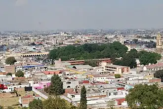 Чолула — бывший индейский город, прославленный пирамидой классического периода Мезоамерики, известной как Великая пирамида Чолулы или Тлачиуальтепетль (науатль — «рукотворная гора»), которая является крупнейшей по объёму пирамидой в Америке; длина и ширина основания 450 м, высота 66 м, на её вершине выстроена церковь Пресвятой Девы Утешительницы (исп. Iglesia de Nuestra Señora de los Remedios), 1554 год, отстроена заново в 1874 год; монастырь Сан-Габриель, церковь — 1549—52 годы.