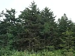 Основные лесообразующие породы хвойных лесов Сахалина — лиственница Каяндера (Larix cajanderi), ели аянская (Picea ajanensis) и Глена (Picea glehnii), пихты сахалинская (Abies sachalinensis) и Майра (Abies mayriana). Тис остроконечный (Taxus cuspidata) встречается единичными деревьями или небольшими группами в составе хвойных и лиственных лесов. Преобладающие лиственные породы — это берёзы каменная (Betula ermanii) и повислая (Betula pendula), ольха пушистая (Alnus hirsuta), осина (Populus tremula), тополь душистый (Populus suaveolens), ивы росистая (Salix rorida), козья (Salix caprea) и сердцелистная (Salix cardiophylla), чозения (Chosenia arbutifolia), ильмы японский (Ulmus japonica) и лопастный (Ulmus laciniata), клёны жёлтый (Acer ukurunduense) и Майра (Acer mayrii). Калопанакс семилопастный (Kalopanax septemlobus), бархат сахалинский (Phellodendron sachalinense), орех айлантолистный (Juglans ailanthifolia), вишня сахалинская (Cerasus sachalinensis) растут преимущественно на юге острова[16].