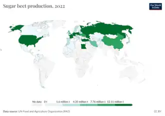 - ↑ "Sugar beet production in 2022, Crops/Regions/World list/Production Quantity/Year (pick lists)". UN Food and Agriculture Organization, Corporate Statistical Database (FAOSTAT)