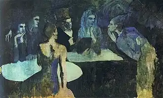 Картина создана в тот отрезок времени, когда Пикассо жил на Монмартре в общежитии Бато-Лавуар среди своих друзей художников и поэтов. Обычно годы 1904—1906 называют розовым периодом, однако это полотно напоминает работы уже завершённого ранее голубого периода (1901—1904). Тогда Пикассо страдал от постоянной депрессии, создавая свои картины в мрачных сине-зелёных тонах[2].