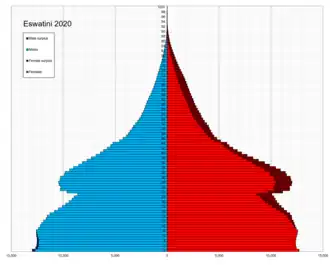 В июле 2010 года численность населения Эсватини оценивалась в 1,35 млн чел., но эта оценка может быть неточной из-за высокого уровня заражённости вирусом иммунодефицита (ВИЧ) — 26,1 % взрослого населения по оценке ООН 2007 года (самый высокий уровень среди стран мира).