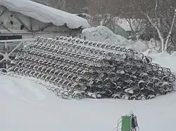 • буроопускные[~ 6] (при работе с пластично-мёрзлой и твердомёрзлой почвой, содержащей крупные обломки породы) погружаются в скважину, диаметр которой превышает идентичные параметры самой конструкции, а оставшийся зазор заполняется цементно-песчаным раствором[12];