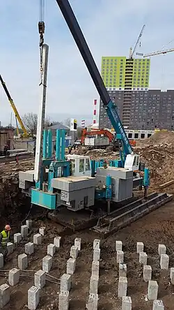• забивные и вдавливаемые сваи (железобетонные, деревянные, стальные предварительно изготовленные)[~ 6]