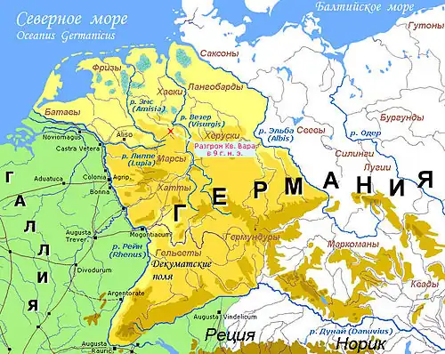 - Germania // Реальный словарь классических древностей / авт.-сост. Ф. Любкер ; Под редакцией членов Общества классической филологии и педагогики Ф. Гельбке, Л. Георгиевского, Ф. Зелинского, В. Канского, М. Куторги и П. Никитина. — СПб., 1885.