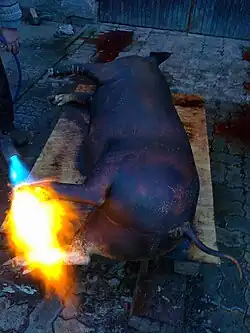 На стол может подаваться специально приготовленная целая свинья как отдельное блюдо (поросёнок). Стол может украшать свиная или кабанья голова (особенно на Пасху).