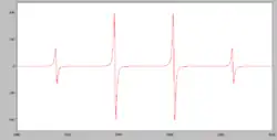 Сверхтонкое расщепление возникает из-за взаимодействия неспаренного электрона с магнитными ядрами радикала. Если электрон взаимодействует с ядром, имеющим спиновое число I, то в результате расщепления возникает 2I+1 линий. Если таких ядер несколько, например, n, то число линий становится равным 2nI+1. У протона спиновое число равно +½, поэтому n эквивалентных протонов расщепляют линию в спектре ЭПР на n+1 линий. Относительная интенсивность этих линий соответствует биномиальным коэффициентам[10].