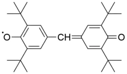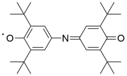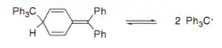 В растворах эти радикалы существуют в равновесии с молекулами-димерами. На положение этого равновесия, то есть на соотношение радикала и димера, влияет сольватация, а также электронные и пространственные эффекты[7]. Первоначально считалось, что димеры имеют структуру гексаарилэтанов, но позже было показано, что они имеют хиноидную структуру[8].