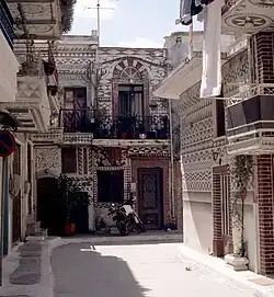 Сграффи́то (итал. sgraffito), или граффи́то (итал. graffito — процарапанный), — техника изображения и разновидность декорирования, которая заключается в нанесении на основу, например кирпичную стену или поверхность керамического изделия, двух и более различных по цвету слоёв кроющего материала (цемента, штукатурки, ангоба) с последующим частичным процарапыванием по заданному рисунку[1]. Сграффито следует отличать как от техники росписи, так и от мозаики. Толщина слоёв сграффито обычно не превышает 1 см, что для глаза почти незаметно. Столь малая рельефность не позволяет отнести эту технику и к рельефному изображению. Она вполне самобытна, относительно проста, не требует особых затрат и незаменима во влажном климате, если речь идёт о декорировании наружных стен зданий, где непригодны традиционные фресковые росписи.