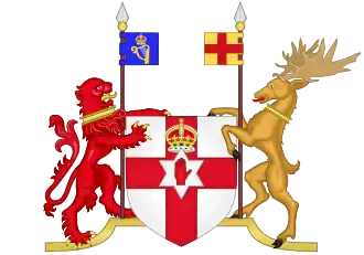 В соответствии с до сих пор действующим Актом Короны Ирландии 1542 года, утверждённым старым Парламентом Ирландии, английские монархи в силу личной унии занимают пост главы государства в Северной Ирландии. После образования независимой Республики Ирландия в 1948 году, Северная Ирландия приобрела статус доминиона в соответствии с Актом об Ирландии 1949 года[5]. При этом Северная Ирландия — единственная часть Великобритании, которая конституционно, в соответствии с Белфастским соглашением 1998 года (отменившим ранее действовавший Англо-ирландский договор 1921 года), имеет право на сецессию путём общенародного референдума. Данное соглашение также установило консоциональную форму правления страной, при которой предусматривается обязательное политическое равновесие при распределении политических сил и назначении на государственные посты в законодательных и исполнительных органах власти. Форма исполнительной власти представлена диархией, где Первый министр и министр его замещающий обладают равным статусом.