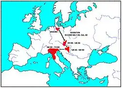 В течение столетий, предшествовавших романизации, Северная Италия была населена разными народами, такими как лигуры и венеты, которые занимались торговлей янтарем и разведением лошадей, этруски, покорившие Северную Италию от Тосканы, основавшие Болонью и распространившие письменность. Позже, начиная с V века до н. э., в этом районе произошла экспансия галльских племен. Эти племена основали несколько городов, таких как Милан, и расширили свое присутствие от Альп до Адриатического моря. Их развитие было остановлено римской экспансией в районе Паданской низменности начиная с III века до н. э. После столетий борьбы, в 194 г. до н. э. вся территория нынешней Северной Италии стала римской провинцией под названием Цизальпийская Галлия. Культура и язык римлян вытеснили предыдущие цивилизации, и Северная Италия стала одним из самых богатых и развитых регионов Западной Римской империи, где была построена обширная сеть дорог и развито сельское хозяйство и торговля.