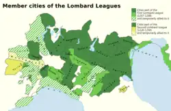 В X веке большая часть Северной Италии формально находилась под властью Священной Римской империи, но на самом деле она была разделена на многочисленные автономные города-государства: коммуны и морские республики. XI век ознаменовался ростом экономики Северной Италии из-за улучшения торговли и сельскохозяйственных инноваций. Расцвет культуры привел к основанию множества университетов, в том числе старейшего в Европе Болонского университета. Растущее богатство городов-государств дало им возможность бросить вызов традиционной феодальной власти, представленной немецкими императорами и их вассалами. Этот процесс привел к созданию нескольких Ломбардских лиг, сформированных разными городами региона, которые победили Фридриха Барбароссу в битве при Леньяно и его внука Фридриха II в битве при Парме, фактически сделав Ломбардию независимой от германских императоров. Лиги не смогли развиться от военных союзов до конфедераций, и позже в различных городах-государствах произошел процесс консолидации; большинство из них стали синьориями, управляемыми могущественными династиями, такими как Скалигеры в Вероне или Висконти в Милане, и подчинили близлежащие города.