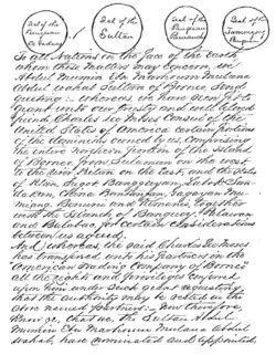 В 1865 году консул США в Брунее Клод Ли Мозес (Claude Lee Moses) приобрёл у султана Брунея в лизинг на десять лет территорию Северного Борнео (ныне провинция Сабах, Малайзия). Только что закончившие гражданскую войну Соединённые Штаты не проявили интереса к обретению азиатских колоний, поэтому Мозесу пришлось продать концессию гонконгской частной American Trading Company of Borneo, которая основала там небольшое поселение Эллена (Ellena) — ныне Киманис (Kimanis).