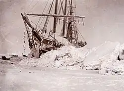 Американская экспедиция Джорджа Де-Лонга 8 июля 1879 года отплыла на барке «Жаннетта» из Сан-Франциско с намерением достичь Северного полюса через Берингов пролив. Однако недалеко от острова Врангеля в Северном Ледовитом океане их корабль был окружён льдами. Следующий 21 месяц вмёрзший в лёд корабль дрейфовал на северо-запад, постепенно приближаясь к Северному полюсу. 12 июня 1881 года «Жаннетта» не выдержала давление льда, дала течь и затонула на 77°15′ с. ш. 154°59′ в. д. Команда сумела спастись и, таща на санях по льду шлюпки с продовольствием, достигла Новосибирских островов. Оттуда 12 сентября 1881 года команда попыталась на трёх шлюпках доплыть до материка. В результате шторма одна шлюпка с экипажем затонула. Две другие добрались до берега, но были разделены штормом. Экипаж шлюпки под командой судового механика Джорджа Мельвилля был подобран местными якутами в устье реки Лены. Группа Де-Лонга, высадившаяся на другом берегу устья, попыталась найти поселение, отправившись в долгий путь по тундре вглубь материка, но лишь двое из 14 человек смогли добраться до людей. Остальные, включая Де-Лонга, умерли, один за другим, от голода и измождения[12][13].