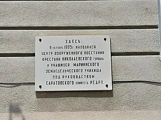 В конце XIX века Николаевский городок стал центром поволжского крестьянского революционного движения. Мариинское земледельческое училище стало опорным пунктом революционеров. Крестьяне и ученики в октябре 1905 года создали революционный крестьянский комитет, взяли власть в свои руки и осуществили ряд революционно-демократических преобразований. В 1908 году в докладе царю министр юстиции писал, что это «одно из самых выдающихся явлений смуты 1905 года»[2].
