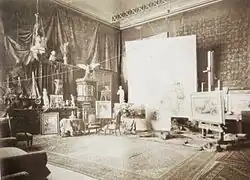 В 1880 году художник начал постройку собственного дома в Риме на виа Гаэта, который хотел видеть своего рода убежищем, однако он сразу оказался внесён в путеводители Рима как достопримечательность[95]. Семирадский принимал у себя гостей только по средам и воскресеньям и, как писал Б. Билинский: «ставил себя над своей эпохой и связанными с нею вопросами, добивался свободы творчества, но терял связь с реальной жизнью»[96]. Архитектором был Ф. Азури, но художник принимал самое деятельное участие в проектировании и оформлении виллы (как называл её владелец). Постройка была двухэтажной, причём мастерская художника делилась на парадную часть, где хранились готовые произведения искусства и реквизит для живописных работ (здесь же принимали посетителей), и рабочую. Собственно рабочая студия на втором этаже была оснащена подъёмниками для передвижения больших холстов. Дом был облицован каррарским мрамором и украшен ионическими пилястрами; его окружал просторный сад, где были представлены разнообразные экзотические растения[97]. В 1938 году он был снесён, на его месте находится здание дирекции фирмы «Пирелли» и частично — российского посольства[98].