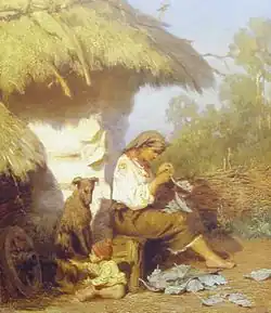 Кроме обязательных академических заданий на библейские и античные сюжеты, Семирадский в Петербурге пытался писать на самостоятельно выбранные темы. Картина «Людовик XIV после подписания смертных приговоров» утрачена, некоторое представление о её стиле можно составить по другой работе Семирадского — «Французский художник времён Людовика XV пишет портрет маркизы» (принадлежала великому князю Николаю Константиновичу). Семирадский работал тщательно: подбирал материал в Публичной библиотеке, особое внимание уделяя быту, костюмам и мебели «Галантного века». Однако куртуазная культура показалась ему «слишком легковесной», лишённой положительного этического идеала, что для Семирадского, склонного к морализаторству, было существенным[32]. Пробовал он себя и в жанровой живописи, но художественные достоинства этих его работ невелики; в академических программах на заданную тему он демонстрировал совершенно другой уровень профессионализма. Тем не менее жанровые сцены на украинские сюжеты продавались и даже выставлялись в Обществе поощрения художников[33].