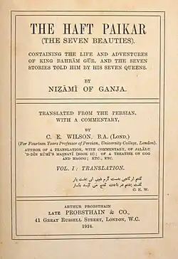 - ↑ Nizami of Ganja. Haft Paikar / C. E. Wilson. — Kessinger Publishing, 2003. — Т. 2. — 528 с. — ISBN 076617736X, 9780766177369.