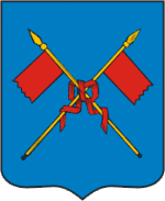 Сердобольский старый. В голубом поле на золотых древках красные знамёна, положенные крестообразно.