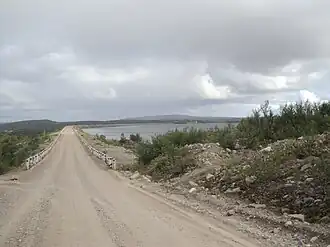 - каменно-земляная плотина в русле р. Воронья длиной 1820 м и наибольшей высотой 78 м;