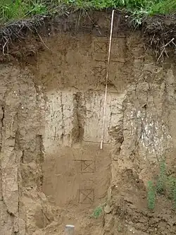 - BA2[2] — элювиально-иллювиальный горизонт серовато-бурого или серовато-коричневого цвета, мелкоореховатой структуры, поверхность отдельностей покрыта слоем кремнезёмистой присыпки.