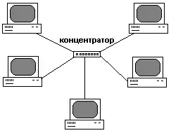 В сети, построенной по топологии типа «звезда», каждая рабочая станция подсоединяется кабелем (витой парой) к концентратору, или хабу (англ. hub). Концентратор обеспечивает параллельное соединение ПК и, таким образом, все компьютеры, подключенные к сети, могут общаться друг с другом.