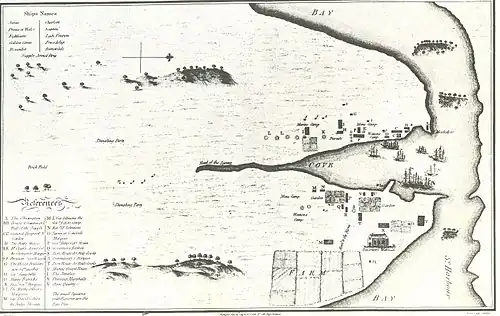 Первый флот, организованный военно-морскими силами Великобритании, из 11 кораблей и судов (2 военных корабля — флагман HMS Sirius, десятипушечное вооруженное торговое судно, 511 тонн, и вооруженный тендер HMS Supply 175 тонн для посыльной службы, 6 транспортов с заключенными, от 278 до 452 тонн, и 3 судна с припасами, от 272 до 378 тонн) во главе с капитаном Артуром Филлипом прибыл в Ботани-Бей в январе 1788 года. При более тщательном обследовании берегов Ботани-Бея это место было признано недостаточно пригодным для основания новой колонии, в первую очередь из-за недостатка пресной воды, соли и подверженности ветрам. Артур Филлип лично на HMS Supply обследовал расположенный всего в 12 км к северу залив Порт-Джэксон, который Джеймс Кук обозначил на карте, но детально не обследовал. Войдя в Порт-Джэксон, HMS Supply обнаружил, что это большой трёхрукавный залив. Обследовав небольшой Северный рукав (теперь это North Harbour), он затем зашел в широкий изогнутый и недоступный океаническим ветрам и волнам южный рукав залива (теперь: Sydney Harbour), где обнаружил очень удобную круглую бухточку.