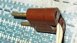 - ↑ EN 50075 (1991), Specification for flat non-wirable two-pole plugs 2.5A 250V, with cord, for the connection of class II-equipment for household and similar purposes, European Committee for Standardization (CEN)