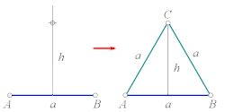Для 1-симплекса это утверждение очевидно. Описанная 1-сфера будет представлять собой две равноудалённые от центра отрезка точки, совпадающие с концами отрезка, и её радиус будет составлять R = a/2. Добавим к 1-симплексу ещё одну точку и попробуем описать вокруг них 2-сферу.