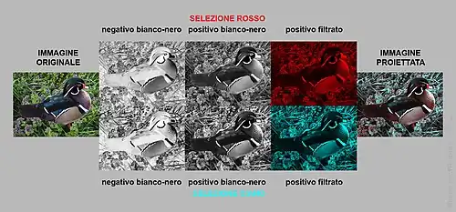 После печати и проявления с обеих сторон киноплёнки получались позитивные цветоделённые чёрно-белые изображения. Следующий этап получения цветного фильма заключался в тонировании оранжевой составляющей изображения в дополнительный сине-зелёный цвет. После этого киноплёнка сушилась и процесс повторялся с её обратной стороны, чтобы тонировать сине-зелёную составляющую в дополнительный красно-оранжевый цвет. В результате такого процесса получался цветной позитив, составляющие которого располагались с разных сторон подложки.